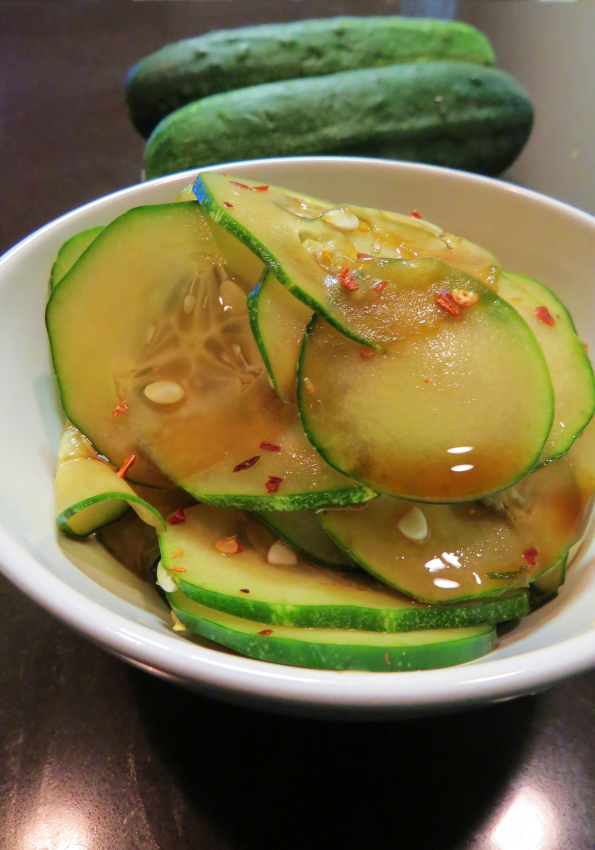 - Mix soy sauce and red wine vinegar, pour over cucumbers.